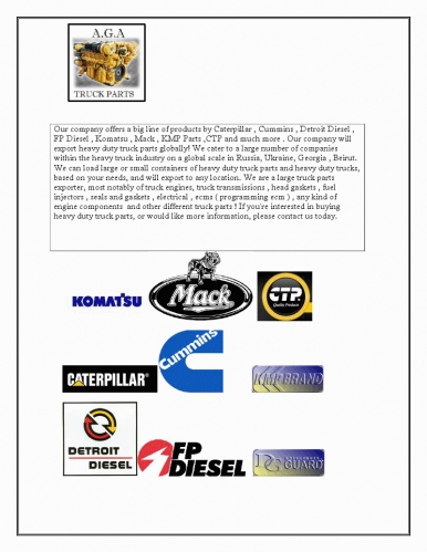 Наша компания занимается прямыми поставками запчастей из Америки! Мы привозим оригинальные, не оригинальные, новые и бу запчасти на все виды американской грузовой техники! мы работаем с такими производителями как detroit diesel cummins,caterpillar,FPdiesel,Komatsu,CTP и многими другими. Срок доставки запчастей от 3 - 10 дней! Если Вас заинтересовало наше предложение, просьба связаться с нами : 8 909 674 06 57 8 916 845 91 16 ... Читать полностью >>